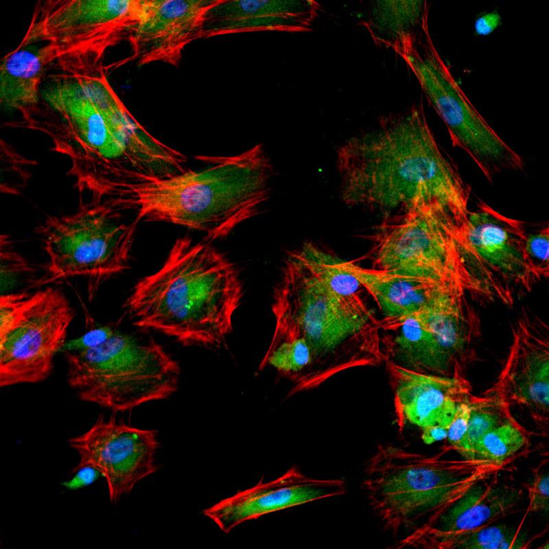 鬼筆環(huán)脹可以特異的與真核細(xì)胞的F-actin結(jié)合,從而顯示微絲骨架在細(xì)胞中的分布。鬼筆環(huán)腦的熒光衍生物作為一...